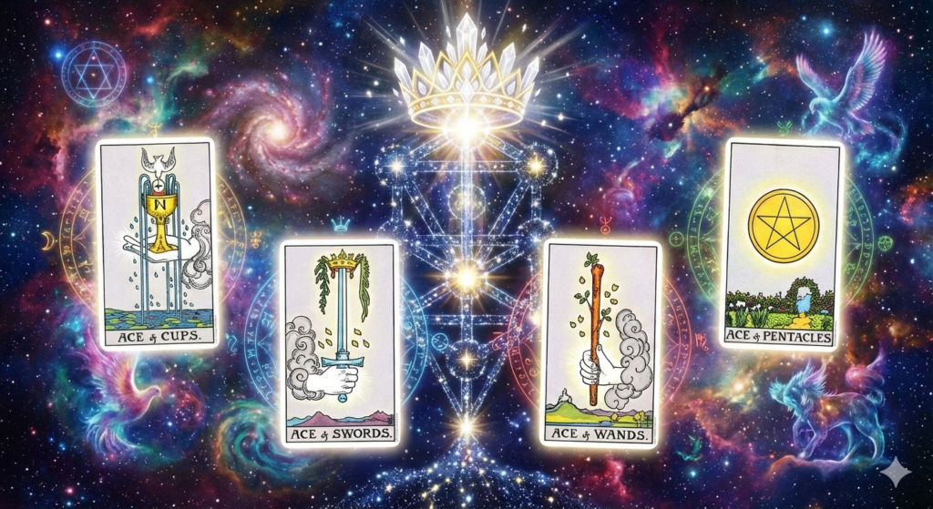 بنابراین، وقتی در یک قرائت تاروت با یک کارت آس روبرو می‌شوید، شما در حال نگاه کردن به انرژی آن خال (Suit) در “کِتِری‌ترین” حالت آن هستید: یک پتانسیل عظیم، الهی، و هنوز شکل‌نگرفته که آماده است تا وارد زندگی فرد شود.