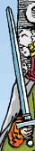 او شمشیرش را به‌صورت عمودی و محکم در دست راست گرفته است. این حالت نماد قاطعیت، قطعیت و پیروی از اصل و قانون است. تیغه‌ی شمشیر مانند خط کشی است که میان درست و نادرست جدایی می‌اندازد.