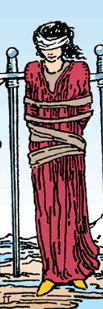 منظرۀ بیحاصل اطراف او نشاندهنده کمبود خلاقیت است و آسمان تاریک در دوردست، نماد ناامیدی است، زیرا او باور دارد که راه فراری از این وضعیت ندارد. اما حقیقت این است که اگر چشمبند ترس و محدودیت ذهنی را بردارد، میتواند به سادگی آزاد شود. حتی زمانی که مشکلات غیرقابلحل به نظر میرسند، همیشه راهی برای رهایی وجود دارد. این کارت به ما هشدار میدهد که اگرچه راه فرار ممکن است آسان نباشد، اما همچنان باز است.