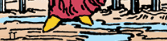 این یکی از مهمترین نمادهای امید در کارت است. رنگ زرد نماد عقل، روشنفکری و قدرت درونی ذهن است.، او کفش به پا دارد. این یعنی او کاملاً مجهز است که راه برود، حرکت کند و خود را نجات دهد. قدرت فکر کردن و درک وضعیتش (نماد رنگ زرد) همچنان با اوست. کفشها نشان میدهند که ابزار رهایی در اختیار اوست؛ او فقط باید از آنها استفاده کند. این یک یادآوری ظریف است که توانایی حل مسئله در درون خود فرد قرار دارد.