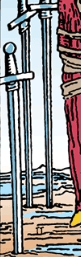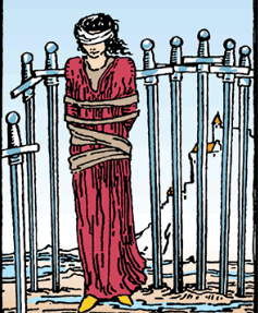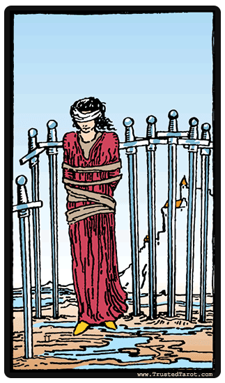 اما پیام اصلی این کارت این است که این شرایط را خودتان با افکار منفی و ترسهای فلجکنندهای که اجازه دادهاید بر شما مسلط شوند، ایجاد کردهاید. اگرچه شمشیرها شما را احاطه کردهاند، اما همیشه این امکان وجود دارد که چشمبند را بردارید و راه فراری بیابید. این کارت همچنین میتواند نشاندهنده پیامدهای منفی، قضاوت یا حتی مجازات مانند محاکمه، زندان یا سایر گزینه های تنبیهی باشد.
