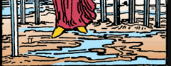پاهای فرد در آب ایستاده است. این آبهای کم عمق نماد جریان احساسات و ناخودآگاه هستند. این نشان میدهد که احساسات او (اگرچه طغیانگر نیستند) در این وضعیت گرفتاری نقش دارند. ترس، تردید و آسیبپذیری عاطفی زمینهایی است که او روی آن ایستاده است. با این حال، از آنجایی که آب کمعمق است، نشان میدهد که این احساسات کنترلنشده و غیرقابل مدیریت نیستند؛ آنها فقط نیاز به تصدیق و عبور دارند.